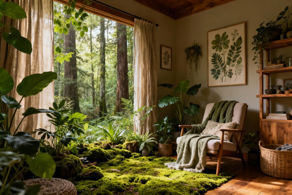 Craving a room that feels like a deep breath of fresh air? Let’s build a forest-inspired sanctuary that’s warm, moody, and a little bit magical. We’re talking layered textures, mossy tones, natural wood, and just enough whimsy to make your space feel like a modern woodland retreat—no tent required.