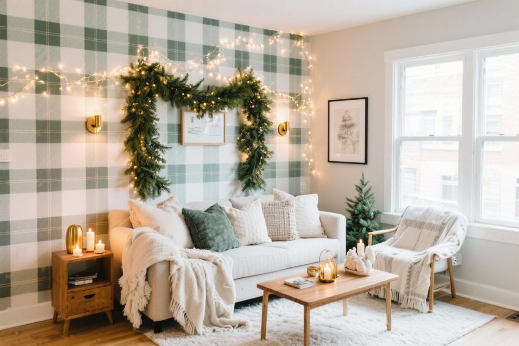 - Accent wall: Deep green, rust, or navy patterns look luxe in winter.