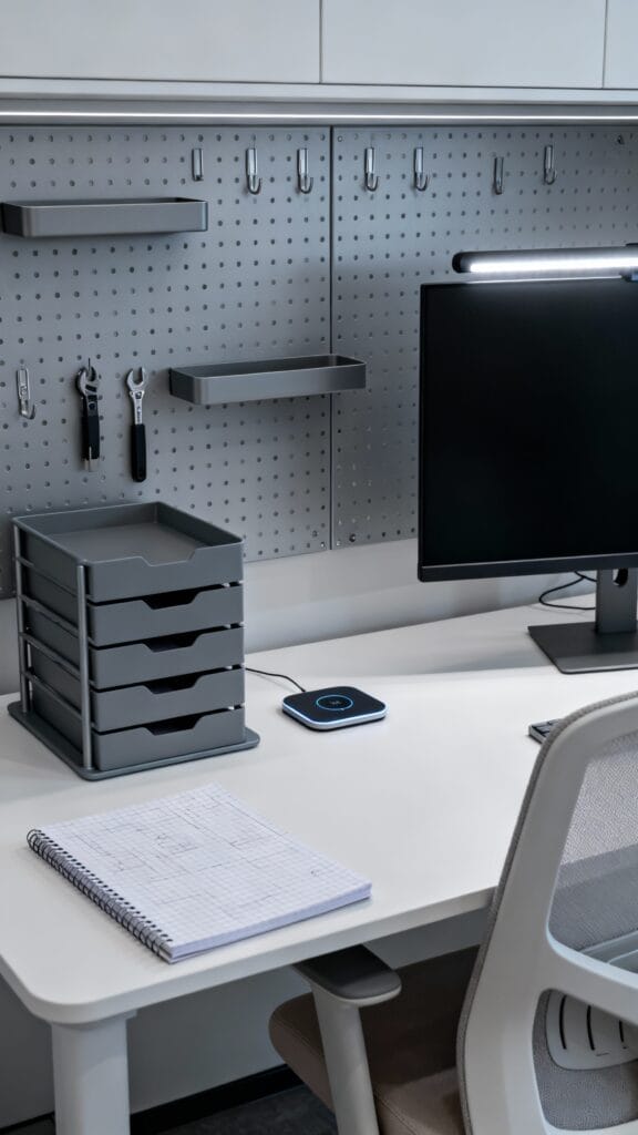 When space runs tight, assign jobs to zones. Color-blocking turns your walls and desk into a smart system.