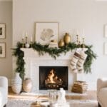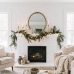 Start with a foundation that feels lush. Think a long, low garland—real or faux—anchoring your mantel and setting the tone. Winter greenery like cedar, pine, and eucalyptus instantly signals “cozy season” without screaming holidays.