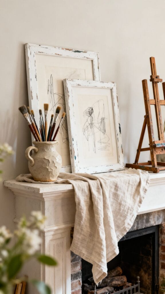 15. Artist’s Studio Mantel With Paint-Washed Frames