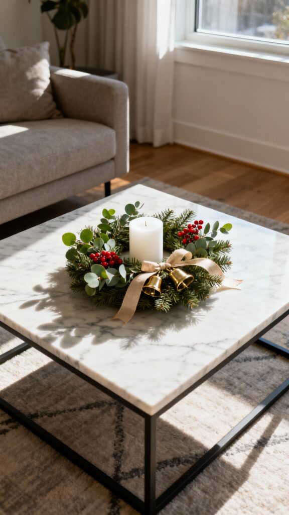 Christmas Coffee Table Decor can completely transform your living room into a cozy, festive retreat. This is where holiday style meets comfort — a space that feels warm, intentional, and beautifully balanced. If you love simple yet stunning Christmas coffee table centerpieces, think of natural greenery, soft candlelight, and a few elegant touches of gold or velvet. These details can instantly elevate your home without overwhelming it. The magic of cozy Christmas decor lies in texture, warmth, and thoughtful layering — not in clutter or sparkle overload. Whether your space is modern, farmhouse, or minimalist, these Christmas decor ideas for living room styling will help you create a scene that feels inviting and ready for the season. Let’s make your coffee table the heart of your holiday home.