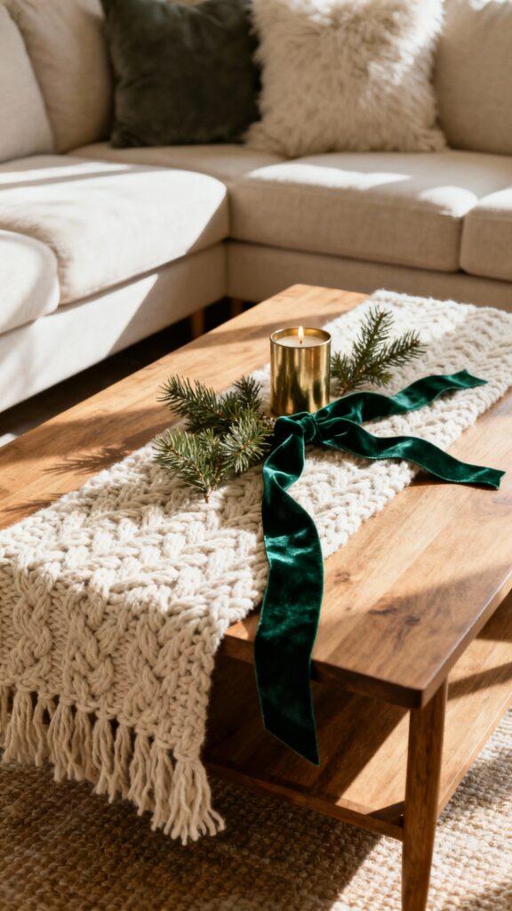 Layer different textures like knits, velvet, and natural wood. Add soft candlelight or a strand of warm fairy lights to create that festive glow.