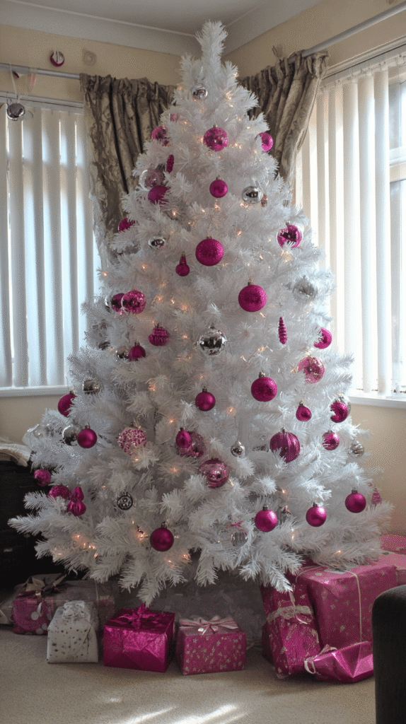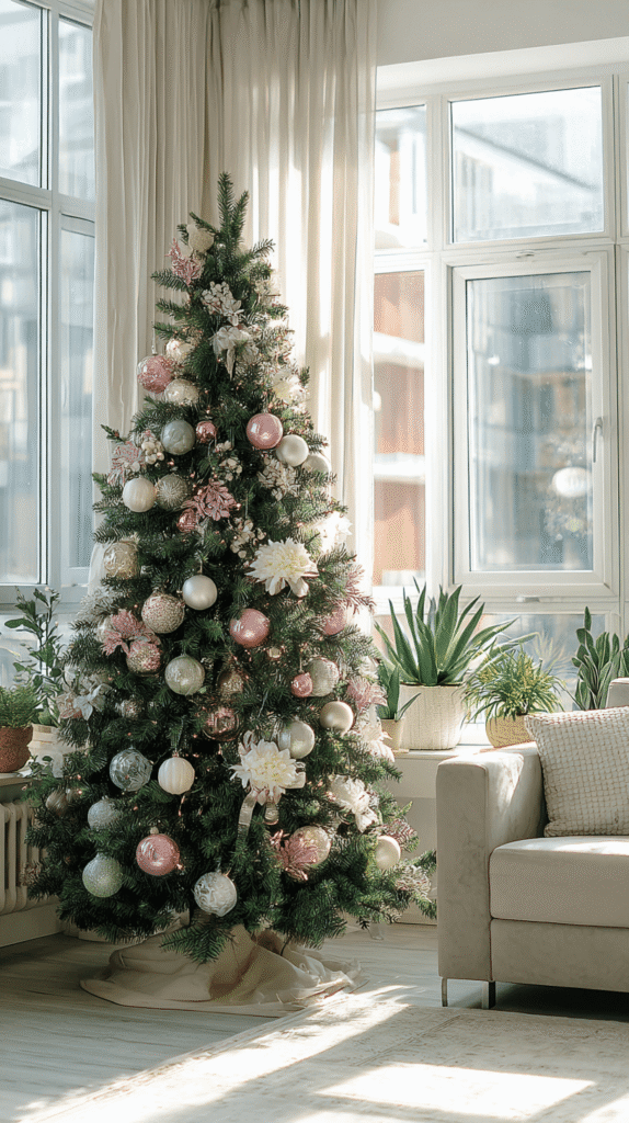I used to think white trees only worked in very modern homes, but a few subtle pink accents completely changed my mind. It felt bright and cozy without any extra effort.