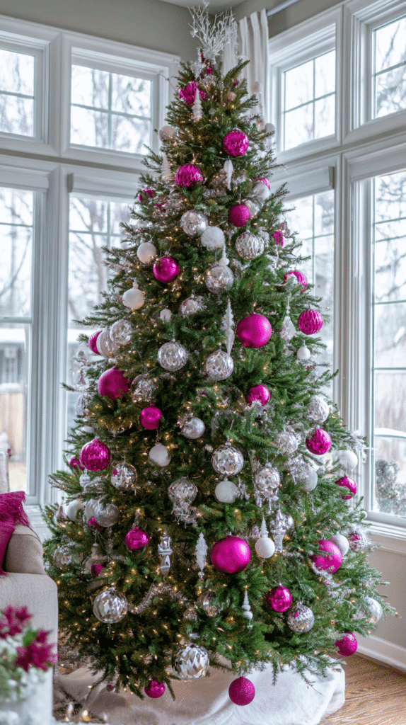 Pink and red actually work together better than most people expect, but the balance matters. I once saw a tree where red was the base and pink only showed up in a handful of ornaments — and it looked far better than a 50/50 mix. If you try this combo, matte red ornaments usually blend better with pink than glossy ones, which can feel a bit too intense.