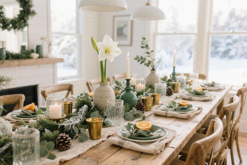 Many people look for ways to shift their home style into a lighter, cleaner winter aesthetic once the festive season has passed. January Table Decorations and January Tablescapes focus on soothing tones, gentle contrast, and subtle sparkle to create a bright yet peaceful dining experience. January Table Centerpieces often use greenery, evergreens, white florals, ceramics, and glass elements to express a modern winter feel.