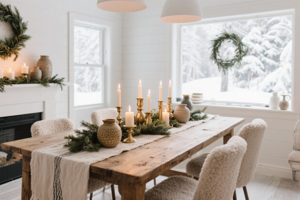 For those who prefer a cozier or more rustic winter look, Winter Centerpiece ideas can incorporate soft linens, natural textures, wooden accents, layered greenery, and warm candle groupings. Winter Table Settings may also experiment with neutral napkins, seasonal dishware, and minimal decorative details that add depth without overwhelming the space.